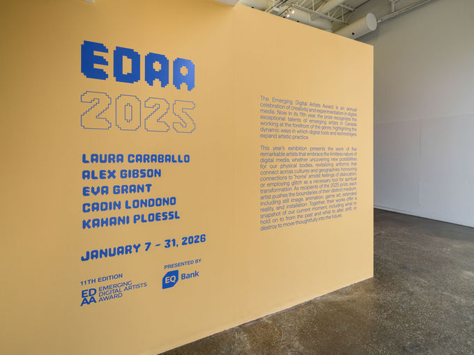 This year’s exhibition presents the work of five remarkable artists that embrace the limitless nature of digital media, whether uncovering new possibilities for our physical bodies, revitalizing artforms that connect across cultures and geographies, honouring connections to “home” amidst feelings of dislocation, or employing glitch as a necessary tool for spiritual transformation. As recipients of the 2025 prize, each artist pushes the boundaries of their distinct medium, including still image, animation, game art, extended reality, and installation. Together, their works offer a snapshot of our current moment, including what to hold on to from the past and what to alter, shift, or destroy to move thoughtfully into the future.